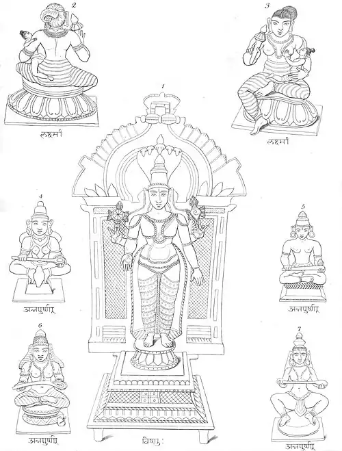 1. Vishnu. 2, 3. Lakshmī. 4, 5, 6, 7. Anna Purnyā Dēvī.