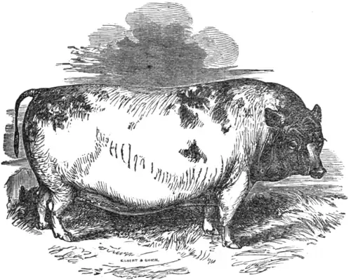 In speaking of the breeds of pigs belonging to this county, we must not omit the now extinct Rudgwick swine, which derived their name from a village in Sussex, and were some of the largest hogs produced in England. They fattened but slowly, and were consequently deemed unprofitable, but yielded excellent meat and in considerable quantities. They have, however, passed away before the alterations produced by the general aim of the present system of breeding.