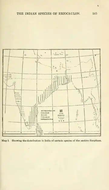 Map 1. Showing the distribution in India of certain species of the section Simplices.