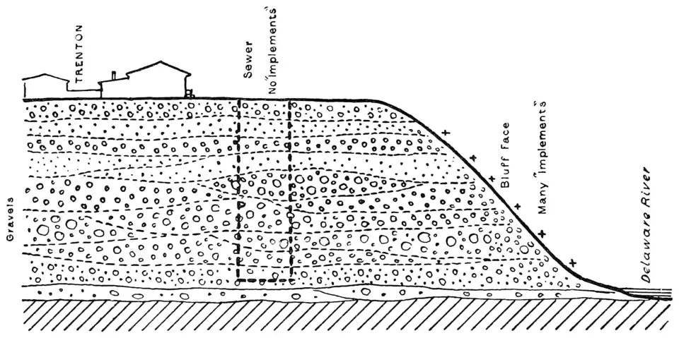 I made several visits to the place, descended frequently into the great cut and examined the gravels and their contents with the utmost care, but without securing a trace of art. Recognizing vital importance of utilizing to the fullest extent this opportunity of testing the art-bearing nature of the gravels at this point, I resolved to undertake a systematic study of the subject. Summoning my assistant, Mr. William Dinwiddie, from his field of operations in the South, I had him spend upwards of a month at the great trench, faithfully watching the gravels as they were exposed. Mr. Dinwiddie had worked three years under my personal direction, and had helped open