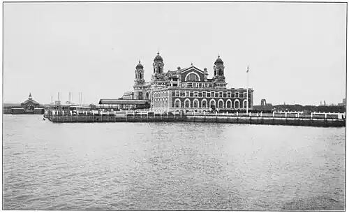 About three-fourths of our immigrants land at Ellis Island. During 1904 606,009 landed here, 60,000 at Boston, 56,000 at Baltimore, 19,500 at Philadelphia, and 9,000 at San Francisco.