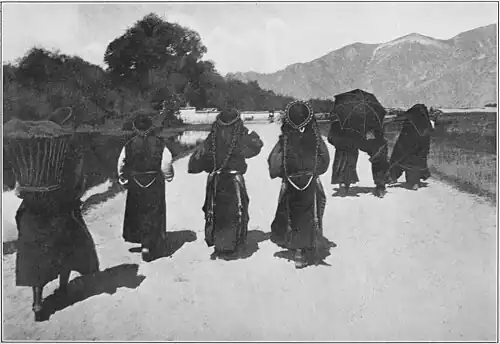 The circular road along which the pious make their marches around Lhasa on foot or in prostrate bows is about 8 miles long. When these bows are faithfully performed the circle is completed in two days, making about 3,000 bows a day.