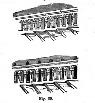 hind them, at the same distance as the balustrades, or between every two or three, as shown in Fig. 30, and keep them cut down to a certain height, and we have immediate depth and increased ease, with undiminished symmetry. But the great difficulty is to keep the thing within proper limits, since too much of it will lead to paltriness, as is the case in a slight degree in Isola Bella, on Lago Maggiore;