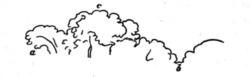 For the form. Select any well-grown grown group of the tree which prevails most near the proposed site of the cottage. Its summit will be a rounded mass. Take the three principal points of its curve; namely, its apex (c), and the two points where it unites itself with neighbouring
