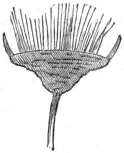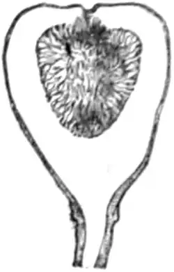 And now for our other example, the fig. What is the fig? Not a fruit certainly, although the freak of Nature here, if we may without disrespect use such a term, is different from those which have come under our notice hitherto. Let us cut open a fig; what then do we see? Why, little things very similar in appearance to flowers, at the base of each of which there is a hard nut-like thing which cracks between the teeth. Flowers indeed they are, and the nut-like things are fruits, the edible portion of the fig being a torus; so that if we assume the strawberry to have had a flat torus instead of a knob-like one, and that the flat torus had been turned outside in, in such a manner as to form a bottle with a very narrow mouth, we should have had a result very much resembling a fig in structure and general appearance.