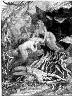 chariots met with a frightful crash in mid-air, and the Princess looked on in breathless anxiety, while a furious battle took place be