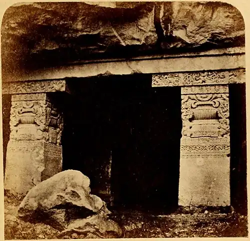 The first, called Do Tal, or Dookya Ghur, is a Buddhist Vihara of two stories. Most of its details are so similar to those above described, that it may be assumed to be, without doubt, of the same age. It is strictly Buddhistic in all its details, and shows no more tendency towards Brahmanism than what was pointed out in speaking of the Viswakarma. It apparently was intended to have three stories, but has been left unfinished.
