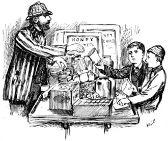 Many other street-corner men there are; the sweetstuff man, for instance, who sells so rapidly that two boys are employed to open the bags for him—one penny a quarter of a pound—and occasionally mohair lace sellers, puzzle and toy retailers, shipwrecked mariners, street butchers, song sellers, negro entertainers, and others; but we have endeavoured, within the limits of this article, to indicate only some of the characters who make a speciality of a street-corner pitch, rather than the heterogeneous army of those who may be termed the kerbstone characters of the London streets.