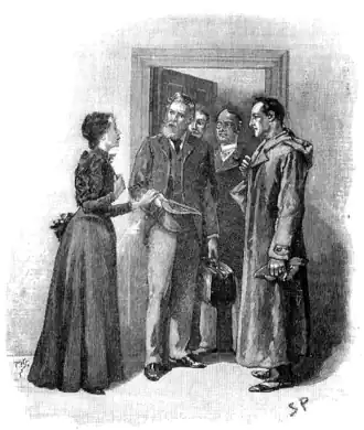 As we emerged from the sitting-room a woman who had been waiting in the passage took a step forward and laid her hand upon the Inspector's sleeve. Her face was haggard, and thin, and eager; stamped with the print of a recent horror.