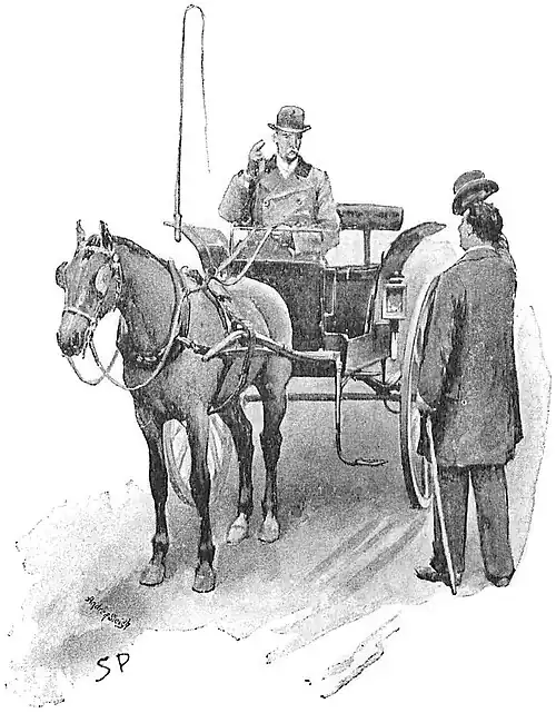 "Sir James Norris was waiting with a dog-cart."florid man of fifty or thereabout, known away from home as something of a county historian, and nearer his own parts as a great supporter of the hunt, and a gentleman much troubled with poachers. As soon as he and Hewitt had found one another, the baronet hurried the detective into his dog-cart. "We've something over seven miles to drive," he said, "and I can tell you all about this wretched business as we go. That is why I came for you myself, and alone."