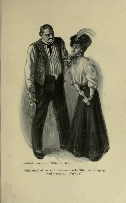 "'Still afraid of me, eh?' he asked, as he lifted her drooping head brazenly." Page 226