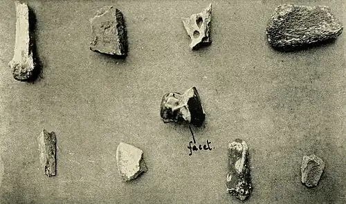 Rolled fragments of bone from the Burmese ferruginous conglomerate.