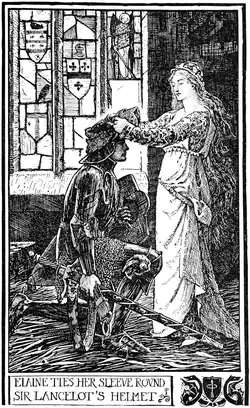 ELAINE TIES HER SLEEVE ROUND SIR LANCELOT’S HELMET.