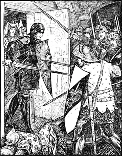 mine own lady, comfort yourself whatever happens to me, and go with Sir Bors, my nephew, and you shall live like a Queen on my lands.’