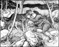 was herding his father’s sheep on a Cumberland moor, when he fell and broke his leg. Dusk was coming on, the road was lonely, and home was three miles away. To spend the night on the bare heath was certain death; how to get help he knew not. Suddenly an idea came to him: he tied one of his thick gloves round the dog’s neck and told him to go home. The dog bounded off,