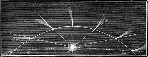 DIAGRAM ILLUSTRATING CHANGES IN THE DIRECTIONS OF THE TAILS OF COMETS.