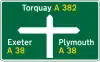 Route number of and next place of traffic importance on roads extending from a junction immediately ahead