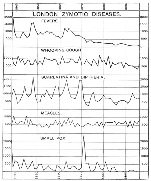 Showing Death-rates from the Chief Zymotic Diseases in London from 1838 to 1896.