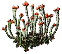 A — Scarlet Cup-moss. B. — Wall-Lichen.