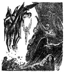 "Hush. It’s men with horses. They're bending over something. But I can't see what they're doing. There’s a mist."