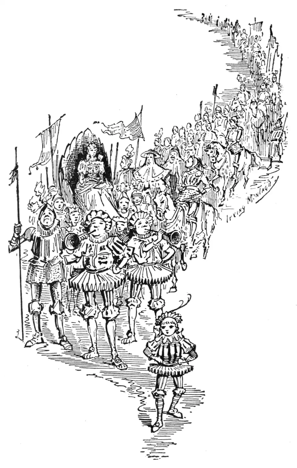 "the beautiful princess, preceded by trumpeters, was conducted to the palace,"