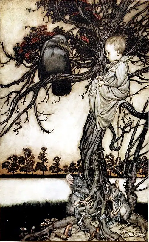 Despairing of the fairies, he resolved to consult the birds, but now he remembered, as an odd thing, that all the birds on the weeping-beech had flown away when he alighted on it, and though this had not troubled him at the time, he saw its meaning now. Every living thing was shunning him. Poor little Peter Pan! he sat down and cried, and even then he did not know that, for a bird, he was