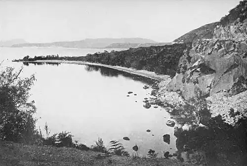 Taupo is by far the largest lake in New Zealand, having an area of about two hundred and forty square miles and an extreme length of twenty-five miles. Its surface is twelve hundred feet above the sea; its greatest depth is five hundred and thirty-four feet. On the east and the north it laves pumice cliffs which in one place are three hundred feet high; on the west it beats against lofty cliffs of lava and agglomerate in alternate layers. The greatest of these are the gray bluffs of Karangahape, rising eleven hundred feet above the lake and extending four hundred feet beneath its surface. The lake is a popular fishing-ground, and at Taupo Wharf I saw many large trout swimming far below in the clear depths near its outlet, the Waikato River.