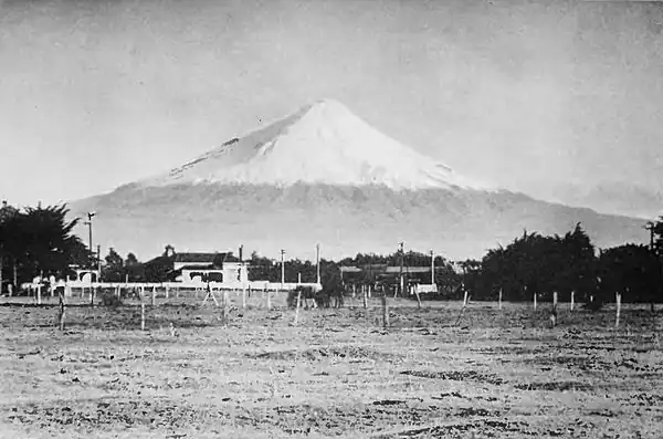 North of Wanganui, in Taranaki, the land of butter and cheese and iron sands, is Mount Egmont, the most beautiful volcanic cone in New Zealand. Egmont, known to the Maoris as "Taranaki," is isolated on a plain far from other mountains. It rises 8260 feet above the sea, and its cone, the culmination of long, gracefully sweeping slopes, is forest-clad to the snow-line.