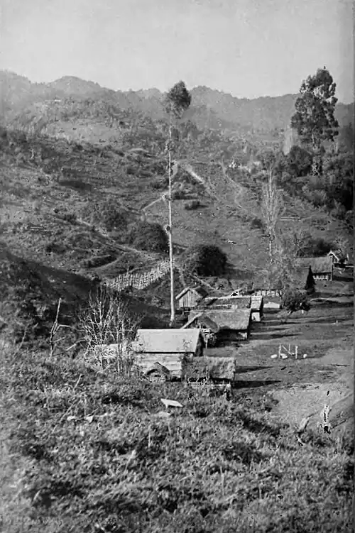 With the distance traveled the scenery continued to improve. The hills became higher and more thickly wooded, and water-courses, carrying with them the cool breath of moist and shaded banks, flowed into the Wanganui through narrow clefts. Near one of these streams stood, one of the most unique buildings in the world. It resembled a mushroom with a half-dozen stems. It was merely a small thatched cone resting on fern posts, and having as its centre support a live tree fern, which projected above the roof and shaded it.