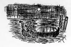 GLIDES a boat o'er silvered waters, Through a path of pale moonbeams, Past gondolas nestling closely, To the city built of dreams.