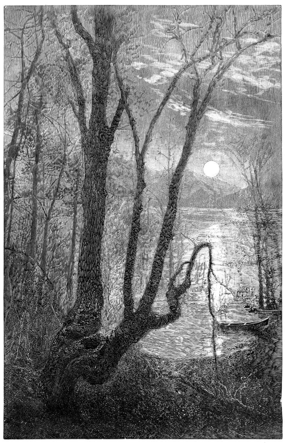Yon mountain's side is black with night,While, broad-orbed, o'er its gleaming crownThe moon, slow rounding into sight,On the hushed inland sea looks down.