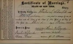 Ada Lindauer (1867-1895) was a housewife. She was the daughter of Charles Frederick Lindauer (1836-1921) and Anna Augusta Kershaw (1841-1931). Ada married Charles Louis Edward Schoenfeld (1858-1922) on June 3, 1886 in Manhattan, New York City. She died in 1895 at age 28. In some documents she is referred to as "Adaline Lindauer" or "Adeline Lindauer" or "Addie Lindauer". (b. 1867; Manhattan, New York County, New York, USA - d. 7 May 1895; Hoboken, Hudson County, New Jersey, USA)