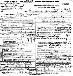 Harry Chauncey Lindauer (1876-1923) was a clerk at the R.B. and W. Bolt Factory in Port Chester, New York. He died in 1923 at age 47. (b. January 8, 1876; New Jersey, USA - d. May 7, 1923; Grassland Hospital, Mount Pleasant, Valhalla, Westchester County, New York, USA)