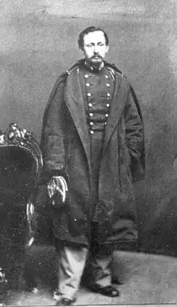 General Hiram Duryea (1834-1914) served in the American Civil War on the Union side, as a Brevet Brigadier General. He was murdered by his own son in 1914. Hiram died in 1914 at age 80. (b. 12 April 1834; Manhasset, Nassau County, New York, USA - d. 5 May 1914; Bay Ridge, Kings County, New York, USA)