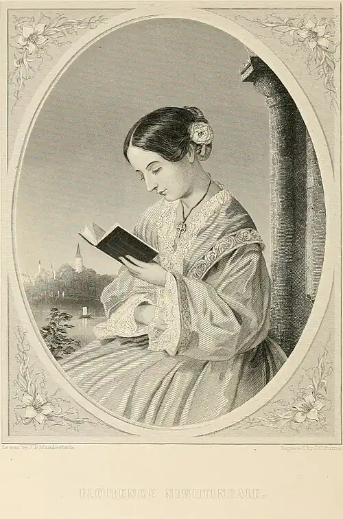 Miss Nightingale was born, according to the best authority we have seen, at Florence in the year 1823. She received her Christian name from that renowned and beautiful Italian city. She was the youngest daughter of Mr. William Shore Nightingale, of Embley Park, Hampshire, and the Lea Hurst, Derbyshire, in England. She was a young lady of singular endowments, both natural and acquired. She early acquired a knowledge of the ancient languages, and of the higher branches of mathematics; while her attainments in general art, science, and literature were of no common order. Her command of modern languages was extensive, and she spoke French, German, and Italian fluently as her native English. She has visited and studied the various nations of Europe, and has ascended the Nile to its farthest cataract. While in Egypt she tended the sick Arabs with whom she came in contact; and it was frequently in her power, by judicious advice, to render them important services. Graceful, feminine, rich, and popular, her influence over those with whom she came in contact was powerful as it was gentle and persuasive. Her friends and acquaintances embraced a large circle, and included persons of all classes and persuasions; but her happiest place has ever been her home, where, in the center of numerous and distinguished relatives, and in the simplest obedience to her admiring parents, she dwelt. Her personal appearance is described by Mr. Trenery in his Crescent City, as he saw her engaged in her mission of mercy. He says she is one of those whom God forms for great ends. You can not hear her say a few sentences, nor even look at her, without feeling that she is an extraordinary being. Simple, intellectual, sweet, full of love and benevolence, innocent—she is a fascinating and perfect woman. She is tall and pale. Her face is exceedingly lovely; but better than all is the soul's glory that shines through every feature so exultingly. Nothing can be sweeter than her smile. It is like a sunny day in Summer; and more of holiness than is expressed in her countenance one does not often meet on a human face as one passes along the dusty highways of life. Through all her movements breathes that high intellectual calm which is God's own patent of nobility, and is the true seal of the most glorious aristocracy—that of mind, of soul!