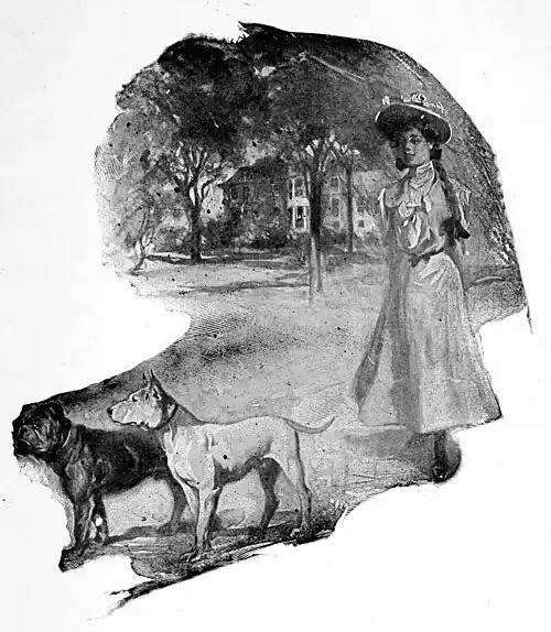 A gentleman with a showing leash around his neck comes up just then and looks at me very critical. “Nice dog you've got, Miss Wyndham,” says he; “would you care to sell him?”