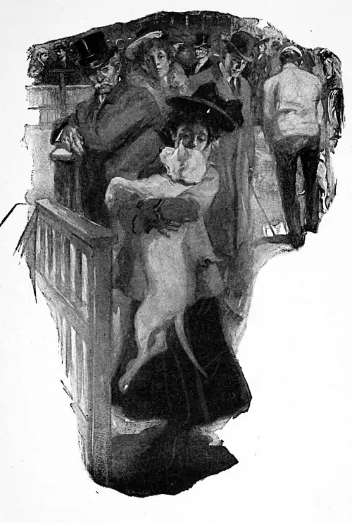 So that is how I “came by my inheritance,” as Miss Dorothy calls it, and just for that, though I couldn't feel where I was any different, the crowd follows me to my bench, and pats me, and coos at me, like I was a baby in a baby-carriage. And the handlers have to hold 'em back so that the gentlemen from the papers can make pictures of me, and Nolan walks me up and down so proud, and the men shakes their heads and says, “He certainly is the true type, he is!” And the pretty ladies asks Miss Dorothy, who sits beside me letting me lick her gloves to show the crowd what friends we is, “Aren't you afraid he'll bite you?” and Jimmy Jocks calls to me, “Didn't I tell you so! I always knew you were one of us. Blood will out, Kid, blood will out. I saw your grandfather,” says he, “make his début at the Crystal Palace. But he was never the dog you are!”