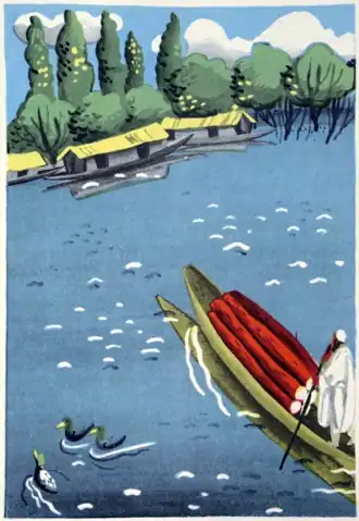 Rhamon had spent all his life in the beautiful Valley of Kashmir, high up in the Himalaya Mountains. Happy Valley it was called, for here was a clear lake with many fish. Bright-colored birds flitted through the trees, fruits of all kinds grew on the grassy slopes, sweet-smelling flowers dotted the fields. And piled up on all sides were the mighty mountains.