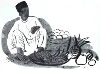 At last Rhamon turned to go back to the stall where he had left his uncle buying spices. On the way he heard the sound of light fingers tapping on a drum, "Tum ta-ta tee tum; tum ta-ta tee tum." Quickly he wriggled his way through the small crowd of people that was gathered around the music. He ducked between the widespread legs of a brass peddler, nearly upsetting his tray of goods.