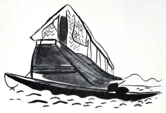 Subro had a small, flat boat called a shikara. He kept it tied to his houseboat. It was long and narrow, pointed at the ends, and lay close to the water. Instead of oars, it had long-handled paddles with heart-shaped ends. Subro used it to visit his friends on other houseboats or to go to the city of Srinagar. Usually he paddled it himself, but when he was in a hurry he took his brothers Ibrahim and Ramzana to help him.
