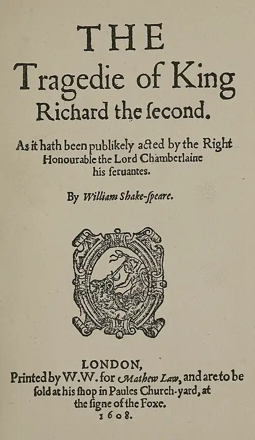The facsimile opposite represents the title-page of the Elizabethan Club copy of the Fourth Quarto (1608).