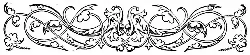 By this time the wolf had come up with them, and when he saw the hare seated so majestically on the hand-loom for a throne, and with the royal mantle of yellow stuff about him, and the written document in his hand, the lamb moreover standing quietly by his side, he said within himself, "These must be very extraordinary beasts, who do not run away at my approach, after the manner of common beasts." Therefore he stood still, and said to the hare, "Who and whence art thou?" But the hare, still holding the piece of written paper in his hand, made as though he were reading from it as follows:—"This is the all high command of the god Churmusta[8] unto the most noble and honourable hare, delivered unto him by the hands of the moon, on the fifteenth of the month. On the same most noble and honourable hare I lay this charge, that he do bring me, before the fifteenth of the next moon, the skins of a thousand rapacious, flock-scattering wolves." And as the hare read these words, he erected his ears with great importance and determination of manner, and made as though he would have come down from his throne to attack the wolf.