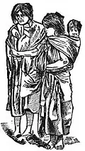 When they get hungry they seek the warm side of the street and there, hunkering down, devour what they scraped up during the day, consisting of refused meats and offal boiled over a handful of charcoal. A fresh tortilla is the sweetest of sweetbreads. The men appear very kind and are frequently to be seen with the little ones tied up in their serape.