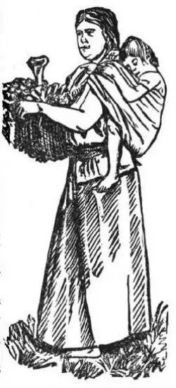 A ragged skirt, and rebozo encircling a babe with its head on its mother's shoulder, fast asleep; black, silky hair which trails on the floor as she kneels, her wan, brown, pathetic face raised suppliantly in devotion, is one of the prettiest, though most common, sights in Mexico on Sunday morning.