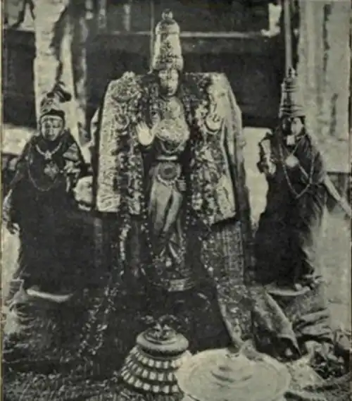 In the temples dedicated to the village deities the ceremonial is not much different. Brāhmanas however rarely officiate and animal sacrifices are generally offered, especially when the village is threatened with an epidemic or with serious scarcity or famine. Vedic incantations are not uttered in these temples.