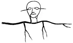 A lady assures us that she saw the ghost of her husband as she was going downstairs with a lighted candle in her hand. The spot k, Fig. 4, when seen against a wall a few feet distant, appears about the size of a human head, and wants very little to furnish it with features. Figured paper on the wall, and a host of other things, may supply them, or even the retinal artery, which often lends body and limbs. (Fig. 5.)