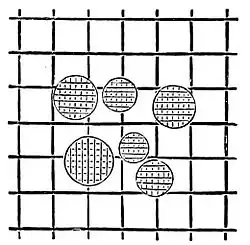 They consist of cells and filaments, the débris of the structures of the eye, and float about in its humours. That some of them exist very near the retina appears evident from the fact that, on placing the eye close to a gauze wire blind, distinct miniature images of parts of the gauze will be seen in them. Fig. 6.
