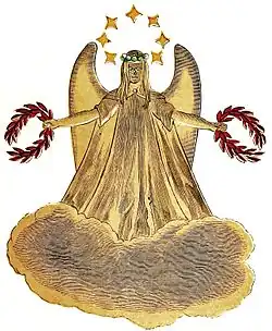 The winged figure of Victory will give a white spectre by Artificial light (rather green by daylight), the red wreaths green, the green roses red, and the orange stars blue.