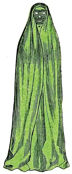 A ghost, according to the general descriptions of those who fancy they have been favoured with a sight of one, appears to be of a pale phosphorescent white, or bluish white colour; usually indistinct, and so transparent that objects are easily seen through it. When moving it glides in a peculiar manner, the legs not being necessary to its locomotion.