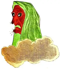 The face of this figure will come out green in the spectre, the garment red, and the cloud white.